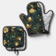 Personalised Emerald Gold Floral Oven Mitt & Pot Oven Mitt & Pot Holder Set