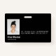Easily personalise this Custom Horizontal Employee Name Badge with Photo, Scan Bar Code or Qr code and business logo. A simple business design in cool total black and white colours fully customisable in front and back sizes, sans-serif basic and modern fonts and a professional and clear look. These standard security id name tags badges are avaiable with lanyard, metal clip or with retractable. You can personalise your id badge cards choosing any background colour and any font style with Graphic Design editor by clicking on customise further. No minimum order.