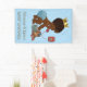Personalised elegant ethnic vintage little prince baby shower blue banner. A beautiful vintage illustration of a cute and adorable African American baby boy with stylish blue diaper and a gold crown. He is talking on an old red retro telephone telling you that he is on his way! He is holding a little blue suitcase and his quirky teddy bear is leaning against it - he's all packed up and ready for his arrival! The background is a pretty blue colour. If you need any assistance customising your product please contact me through my store and I will be happy to help. I have matching products in my store.