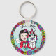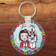 Whimsical hand drawn fairy and unicorn folk art key chain. Just add your name in the customise area.