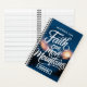 Inspirational Christian Journal featuring the phrase 'Faith Can Move Mountains' in elegant Calligraphy lettering over a serene watercolor mountain landscape with a glowing sunrise. personalised with name.