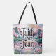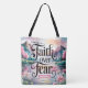 A peaceful watercolor landscape at dawn with soft pastel skies, featuring the inspirational phrase "Faith Over Fear" in elegant calligraphy. Personalised with name.