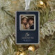 Personalised Family Framed Christmas Ornament. This customisable holiday ornament features a central photo frame, perfect for displaying a cherished family picture. Personalise it with your family name and the year, both elegantly inscribed above and below the photo. The ornament’s colours can be fully customised to match your holiday decor, making it a unique and meaningful addition to your Christmas tree. © Kimbellished, LLC