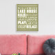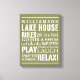 Trendy and personalised wall art in a soft, earthy, khaki green with lettering in white. Customise with your family name and let everyone know the "rules" of the lake house that need to be followed. From going boating to napping often, the order of the day is to RELAX!