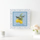 Personalised kitchen clock with beautiful hand painted scroll work border that frames the central image. The scrolls came from a vintage iron fence pattern and were hand painted by Audrey Jeanne in oil pastels with a soft pastel sky blue repeat of the pattern in a larger size and a hand painted cluster of lemons on a small branch with flower and leaves. Citrus is such a timeless theme for kitchens. A complete set of products are available to match. Art copyright Audrey Jeanne Roberts, all rights reserved.