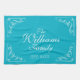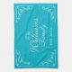 Personalised family name established kitchen towel. Turquoise blue towels with elegant ornate flourish swirly swirls. Classy home decor for husband and wife couple / newly weds. Elegant monogrammed design for men and women. Stylish script calligraphy typography with personalised surname. Cute personalised gift idea for wedding, engagement, baby shower, new baby, anniversary, birthday, housewarming party, reunion etc. Pretty chic interior decoration for new house. Make your own with your last name and custom established year. Est. 20XX.