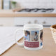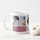 This simple modern personalised photo mug design with mauve pink accents puts your favourite photos front and centre. Customise with six photos of friends, kids, grandchildren, pets, or your favourite places, then personalise with a single initial monogram, your family name, and year established.