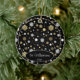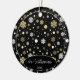 Cute December Christmas holiday tree ornament with room to personalise or customise with your family name in an elegant font script, personal photo and year date of your choice. And a pretty stylish faux gold and white snowflakes pattern on a black background as decoration. Unique memories keepsake that your kids' grandparents, other family members or your friends will love!