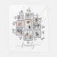 Personalised family tree photo blankets are a timeless way to honour generations of love, and this custom design with 10 photo slots is a heartfelt gift for any occasion. Featuring a beautifully illustrated grey family tree with framed photo areas and elegant leaf accents, this blanket transforms cherished memories into a stunning keepsake. The clean white background and neutral tones create a sophisticated, modern look that fits any home decor. Centred at the base of the design is the word “family” in graceful script, emphasising unity and connection. Ideal for grandparents, parents, or large families, this family tree picture blanket makes a thoughtful gift for Christmas, Mother’s Day, Father’s Day, anniversaries, or family reunions. Upload 10 personal photos to create a truly one-of-a-kind collage blanket that celebrates your shared story. Whether draped over a couch, displayed on a bed, or used for cosy evenings, this custom family photo throw brings warmth, love, and memories to any space. A perfect way to preserve and showcase your family’s most treasured moments in a design that’s both stylish and deeply meaningful.