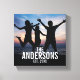 Personalised family photo gift, decorate with family name and established year in white modern sans serif font style, perfect with square photo.