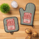 Personalised Family Retro Sardine Tin Stripes Oven Mitt & Pot Holder Set