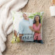 Personalised family photo pillow with elegant text overlay. The photo template is set up for you to add your own pictures - one of the front and one on the back. The front also has the text overlay which you can personalise with your family name. Family is hand lettered in elegant script whilst your family name is printed in bold typography. This design is available with a white text overlay or a black text overlay so you can choose the one that works best with your photo.