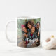 Enjoy your favourite beverage in a custom family photo mug that showcases your cherished memories. This simple design features "Family" in a script font accented by a hand drawn heart with your family name personalised beneath it. Designed as a photo collage, it offers space for five of your favourite photos, making it a heartwarming keepsake or a thoughtful gift. Whether you're sipping coffee, tea, or hot cocoa, this personalised family photo mug is a daily reminder of the joy shared with family. Perfect for birthdays, holidays, or special occasions. (The gradient overlay on the large front photo behind the white text, is optional and can be deleted).