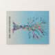 This stylish puzzle is decorated with a rainbow coloured Family Tree design on a blue ombre background.