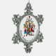 Pretty snowflake shaped ornament features a stick figure mum and dad with a little boy and girl as well as the family dog in front of the holiday tree. You can easily change the family to a photo of your own, and you can also personalise it with your names or other text message.