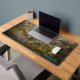 Bring the exotic beauty of this timeless magical fantasy map into your workspace with this exquisite desk mat. Personalise it with a name printed on the lower right corner. This mat features a view of a serene workbench of a busy creator with a high-quality print from a high definition graphic. It provides a smooth and comfortable surface for your work for your laptop, keyboard and mouse. It will also transform your workbench with a stylish and elegant touch. Perfectly suited for all creators, artists, writers and anyone inspired.