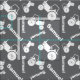Bold stylised tractor graphic personalised add your own name repeat patterned fabric in grey and white. Ideal for sewing projects for boys or those who like farming or vehicles. Customise with your own choice of short name currently reads Samuel. The background colour can also be changed if required, currently grey. Original art and design by Sarah Trett.