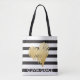 Personalised Faux Gold Heart Black Striped Tote Bag