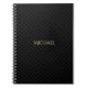 Custom, personalised, modern, classy black and grey chequered pattern, elegant faux gold typography / script name, spiral notebook. Simply type in your name, to customise. Great for home, office, business, school, college, university. Makes a great custom, personalised gift for birthday, back to school, wedding planning, graduation, new years, holidays, christmas, and more.