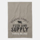 Rustic faux grainsack FEED & SUPPLY kitchen towel personalised with your family name, home city, established date or any other custom text. Please note the subtle burlap background texture is part of the printed design and product is not made of real burlap material. Click the Customise It button to add your own text and photos to create a unique one of a kind design. The perfect touch for your modern farmhouse kitchen decor!