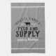 Rustic faux grainsack FEED & SUPPLY kitchen towel personalised with your family name, home city, established date or any other custom text. Please note the subtle burlap background texture is part of the printed design and product is not made of real burlap material. Click the Customise It button to add your own text and photos to create a unique one of a kind design. The perfect touch for your modern farmhouse kitchen decor!