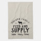 Rustic faux grainsack FEED & SUPPLY kitchen towel personalised with your family name, home city, established date or any other custom text. Please note the subtle burlap background texture is part of the printed design and product is not made of real burlap material. Click the Customise It button to add your own text and photos to create a unique one of a kind design. The perfect touch for your modern farmhouse kitchen decor!