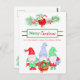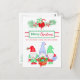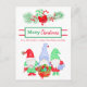 Cute hand drawn watercolor festive whimsical gnomes Merry Christmas card.