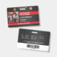 The customisable fire department ID badge features a firefighter emblem at the top that can be customised to your department as well as a place for the state logo as well. Customise with the firefighter's photo on the left. Beside the photo, the firefighter’s name, badge number, rank, and department are displayed. Add your own barcode to the back of the card, along with issue and expiration dates, and description of the firefighter, captain, chief, or office employee.