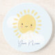 Personalised First Birthday Baby Shower Sunshine coaster illustrated by international designer Kathrin Legg