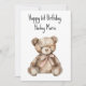 Cute watercolor teddy bear on a child's first birthday card. Name and sentiment can be changed. AI assisted graphic purchased with commercial use. Artwork: FreyasDigitalCrafts