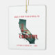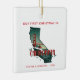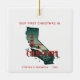 Celebrate your very first holiday season in the Golden State with this festive California-themed Christmas ornament. Featuring a bold illustration of California’s state shape with the iconic Golden Gate Bridge and the word “California” in vintage lettering, this keepsake can be personalised with text, your names and the year. A perfect ornament for new homeowners, newlyweds, families who recently moved, or anyone marking their first Christmas spent in California. This timeless decoration makes a heartfelt holiday gift and a treasured memory for years to come.