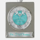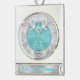 Stunning Personalised First Christmas Married Ornament. You, or CALL Designer Linda: 239-949-9090 EST, to CHANGE the Turquoise Background & Text, Monogram and "Our First Christmas" ornament COLORS. Love Birds joining their lives together over a Monogrammed Wedding Ornaments Heart surrounded by lovely silver and white swirls. Designer Linda can CHANGE All the COLORS, Design, Occasion or create other moderately priced to inexpensive wedding gifts for newlyweds.