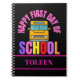 Personalised Happy First Day Of School notebook. Personalised School Notebook is perfect for students. Customise it with your name for a chic girly unique look.