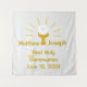 Personalised First Holy Communion design features the image of a shining Chalice with the Eucharist as centre of design on front of shirt. Child's first and middle name are displayed on either side of Chalice in gold letters. Your text appears just below image in same gold lettering. All text is customisable.