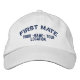 A nautical style personalised first mate embroidered baseball cap. Casual fashion that looks good on, or off the boat!