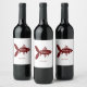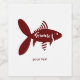 Personalised fish wine labels. Maroon fish with casual script text field at centre and maroon plain text at bottom.