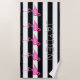 This beach towel is modern and trendy with bold black and white stripes and pink flamingos. Personalise it with your name.