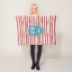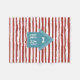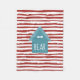 A fun, playful fleece blanket that can be personalised just for your furry friend. This blanket features a turquoise dog house placed upon a background of red stripes.