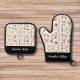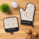 Personalised Floral Bloom Watercolor Script Gift Oven Mitt & Pot Holder Set