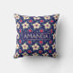 Add a stylish touch to your home with this personalised throw pillow. Featuring a bold navy blue background and a charming retro-inspired flower pattern, this cushion is both practical and eye-catching. The centred custom name (editable) makes it a perfect gift for moms, friends, bridesmaids, teachers—or for yourself! Made from durable materials and ideal a cosy reading nook, nursery, bedroom, or cottage-style living area, it pairs beautifully with light and natural decor themes. Available in multiple sizes to suit your style.