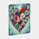 Pretty teal background with red roses and colourful flowers whimsical folk art style floral heart. Add a picture of you and your partner in the personalise area. Sweet romantic gift for Christmas, Valentine's Day or an anniversary.