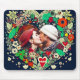 Pretty red, dark blue and beige colourful flowers whimsical folk art style floral heart. Add a picture of you and your partner in the personalise area. Sweet romantic gift for a couple for Valentine's Day, anniversary or Christmas.
