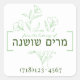 A set of these pretty floral stickers is a terrific ( and practical) gift for anyone who loves to read — and wants to keep track of the books in their library. Personalise yourself (in under a minute) - with Hebrew name. Need help or want to see a variation on this design? Please email us: BestDressedBread@gmail.com