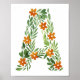 Personalised Floral Letter A with Orange Flowers Poster