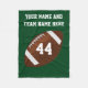 Personalised Football Fleece Blanket With Your COLORS and TEXT. Type in each Player's Name, Team Name or Your Text and Jersey Number or Monogram in templTe text boxes. Change the green background and white text COLORS to Your Team Colours Or yiur football decor colours.