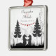 Personalised for Couples Charming Silhouette Mountain Bear Couple Holiday Christmas Ornament or Wedding Keepsake in Shades of Black, White and Red. Personalise with names and a date. ~