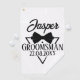 Introducing our Personalised Groomsman Golf Towel, a stylish and sophisticated accessory for golf-loving groomsmen. This towel features an elegant design with a bow tie accent, adding a touch of class to their golf gear. Each towel can be personalised with the groomsman's name or initials, making it a unique and thoughtful gift. Crafted with high-quality materials, this golf towel is highly absorbent and durable, perfect for keeping clubs and hands clean during their golf rounds. With its convenient clip, it can easily be attached to golf bags or carts for quick access. Show your appreciation to your groomsmen with this personalised and elegant golf towel, adding a touch of luxury to their golfing experience.