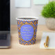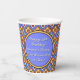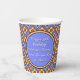 The image on these paper cups was inspired by a repeating French Gothic Tile Pattern w/2 different flower blocks set on point. With a colour palette of Periwinkle or Cornflower Blue, deep Freesia Yellow, Tangerine Orange, White & Black, it brings to mind a French Country Kitchen. Customisable text fields for a Greeting and the Honoree's Name(s) make these cups extra special.