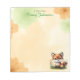 Cute personalised notepad with an ai watercolor green and orange whimsical watercolor fox in flowers woodland forest animals illustration background. Add your name in the personalise area.