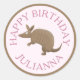 Personalised fun armadillo happy birthday cartoon classic round sticker